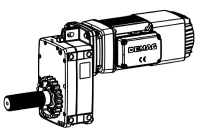 Los motorreductores planos Demag se realizan como reductor de árboles paralelos con una gran distancia entre ejes.
